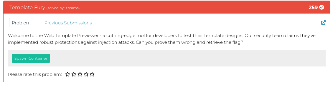 Template Fury is a web exploitation challenge by MetaCTF. The challenge involves unsanitized input with a weak WAF.